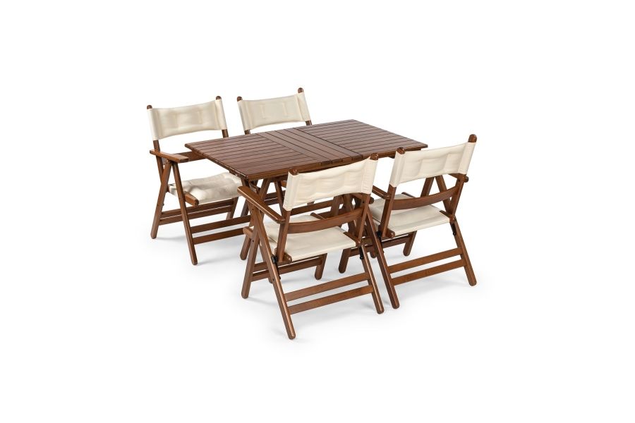 Masa ve sandalyeler katlanabilir olduğundan fazla yer kaplamaz. Montaj gerektirmez.