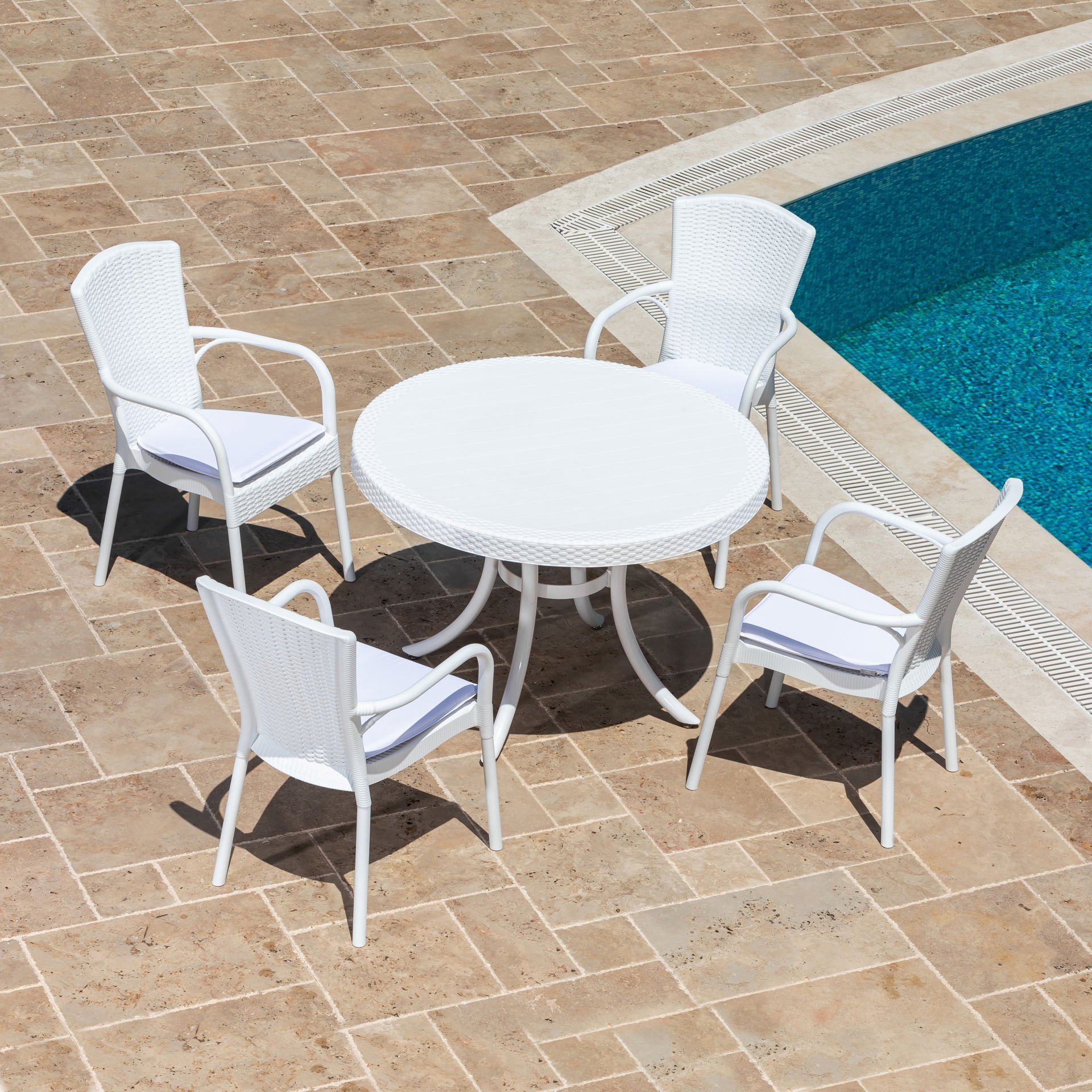4 Adet Plastik Koltuk ve Osaka 110 cm Yuvarlak Masadan Oluşan Bir Settir.