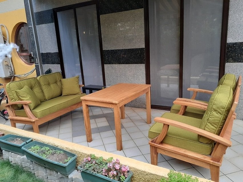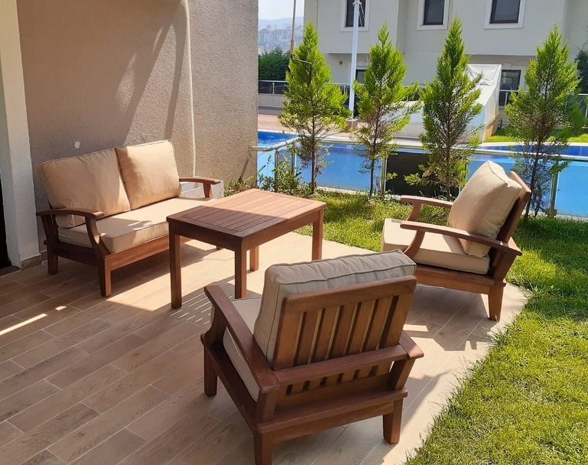 Oturma gruplarımızda kullanılan malzemelerin ve işçiliğin tamamının el işçiliği ve istihdamının yerli olması ile firmamız aynı sektörde hizmet veren rakiplerinden ayrılmakta ve bu anlamda firmaların önüne geçmektedir. Karadeniz Bölgesine özgü KESTANE ağacından yapılmaktadır. Oturma kısmı oturma ve sırt (yaslanma) yeri olarak iki parçalıdır. Minder bölümünde ise silikon boncuk elyaf ve 10 cm sünger kullanılmaktadır. Ürün koruyucu olarak su bazlı dış mekan verniği kullanılmaktadır.