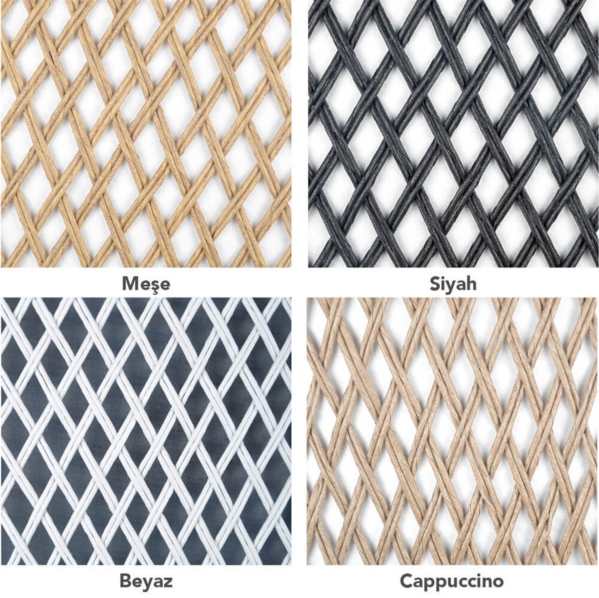 Ürünlerimiz özel üretim sentetik rattan örgü ipleri ile üretilmektedir.Bahçe mobilyası ürünleri alanında dünyada öncü konumunda olan Wintec firması aracılığıyla ithal edilen örgü ipleri ile üretilmektedir. İthal edilen rattan ürünü %97 pe (polietilen) malzemeden üretilmektedir.